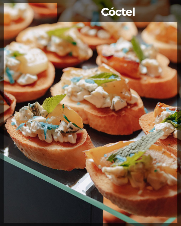- ✔ Cóctel premium (4 a 6 bocados p/p)